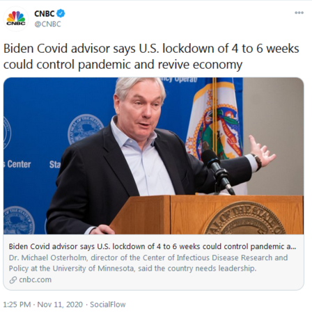 Biden Covid advisor says U.S. lockdown of 4 to 6 weeks could control pandemic and revive economy https://t.co/ts7YNbtiiR