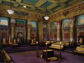 Water in this structure also bears an important symbolic and spiritual meaning. Emanating from the top of the pyramid, water slowly trickles down each layer to finally end up on the map of the world. Water, a representation of divine wisdom, starts by gracing the top of the pyramid, which represents the “illuminated”, the elite of the world. From the capstone, water descends from one layer to another, “feeding” each Masonic degree with its share of wisdom. The symbolic end result is that the entire world is filled with (or drowning in, depending on the point of view) this knowledge.