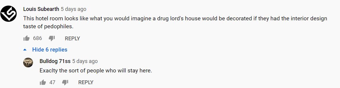 The Empathy Suite of the Palms Hotel in Las Vegas combines colorful, kiddie designs with pills and opioids. It doesn’t take a great deal of imagination to picture what this place was designed for. Here’s a top comment from a YouTube video touring the Empathy Suite.
