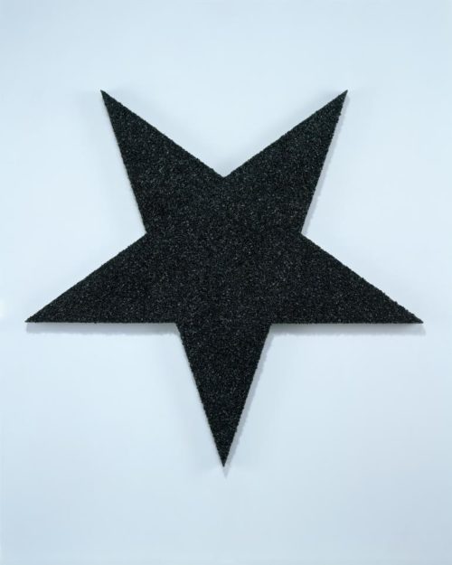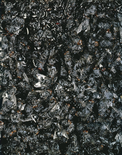 This piece is called Devil Worshipper. As you can see, it is an inverted pentagram (the favorite symbol of Satanists and the occult elite). It is entirely made of … dead flies.
