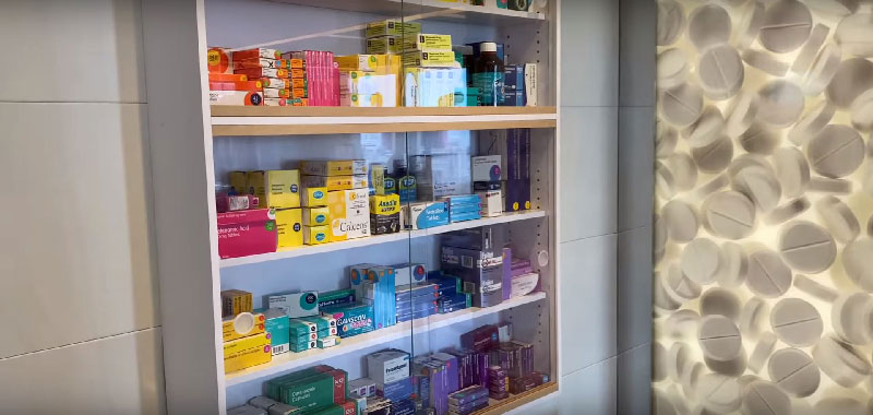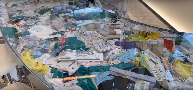 The bar contains all kinds of tubes, syringes, pill wrappers, and other items associated with surgeries and medical procedures. Is that the type of stuff you want to be looking at while taking a drink? What if you looked up?