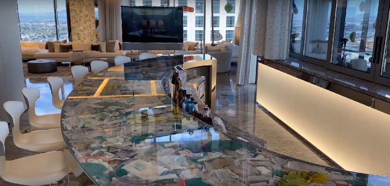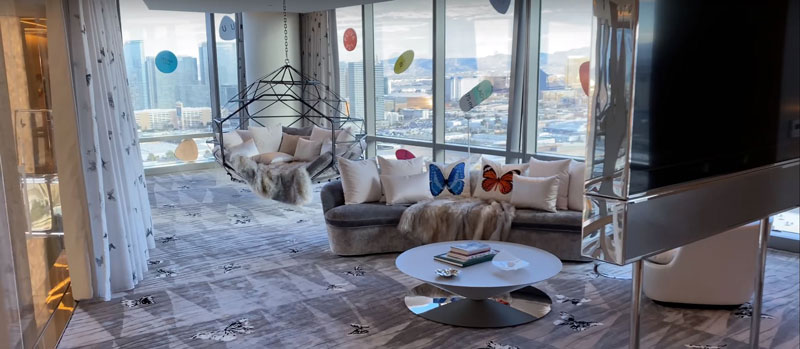 Located at the very top of the Palms Hotel in Las Vegas, the Empathy Suite is the “crown jewel” of the hotel’s massive $700 million renovation project. Sprawling over 9000 square feet and divided into two floors, the suite goes for $100,000 per night – with a two-night minimum.