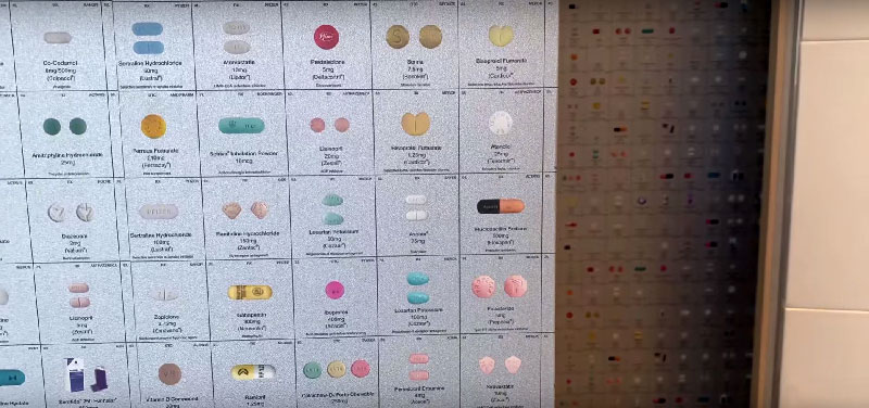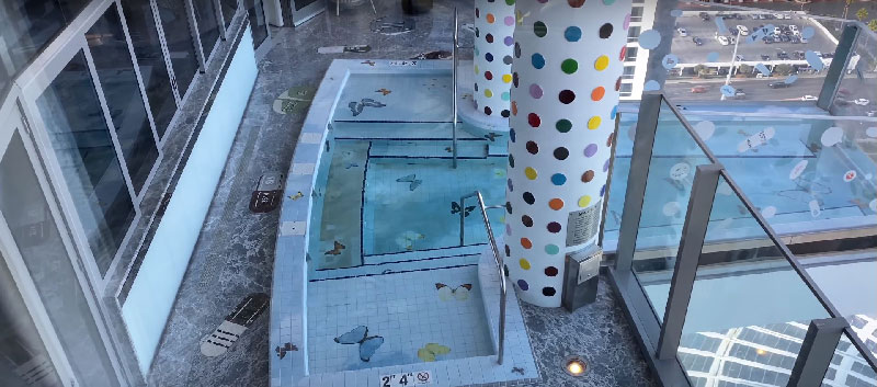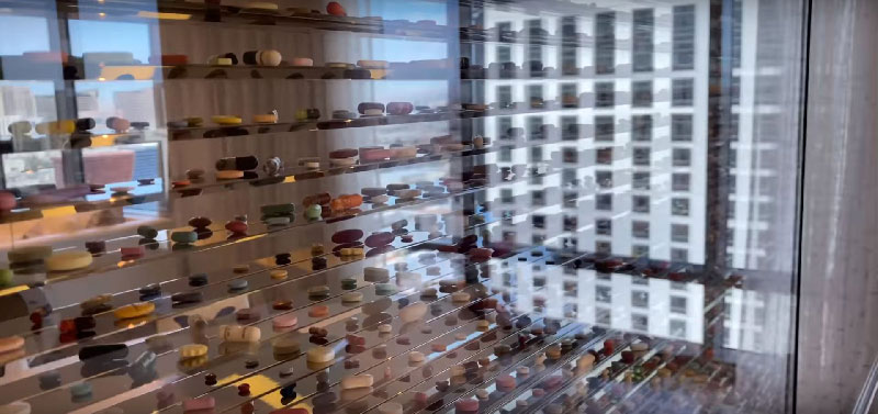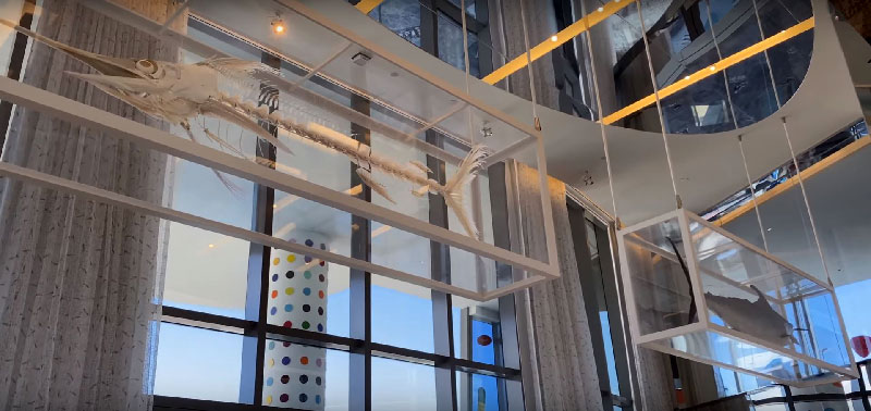 Why is there a medicine cabinet in the main living area? Because it is actually a “work of art” by Damien Hirst titled Vegas.