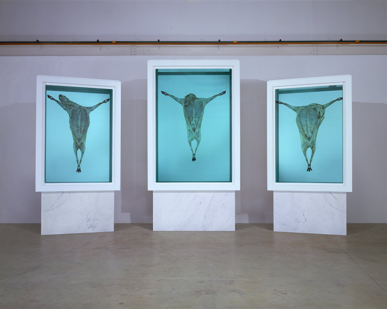 Hirst often combines his morbid subjects with Christian themes to create rather blasphemous works of art.