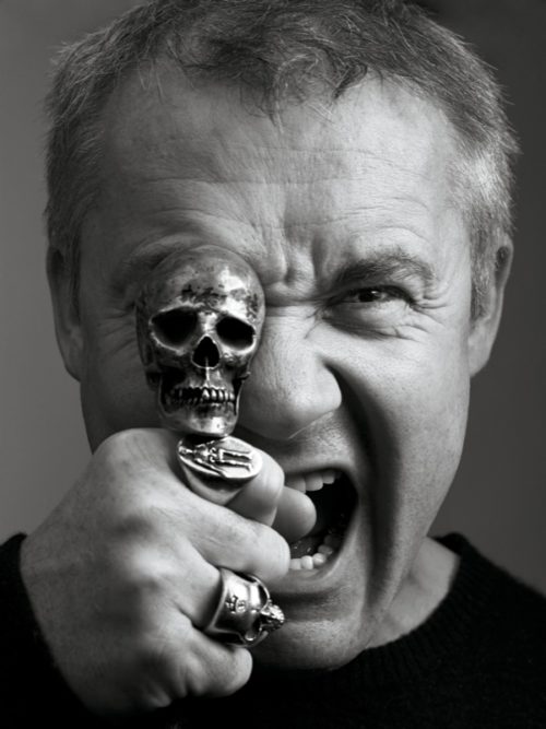 Damien Hirst does the one-eye sign using a skull in Interview Magazine. That sums up everything you need to know about him.