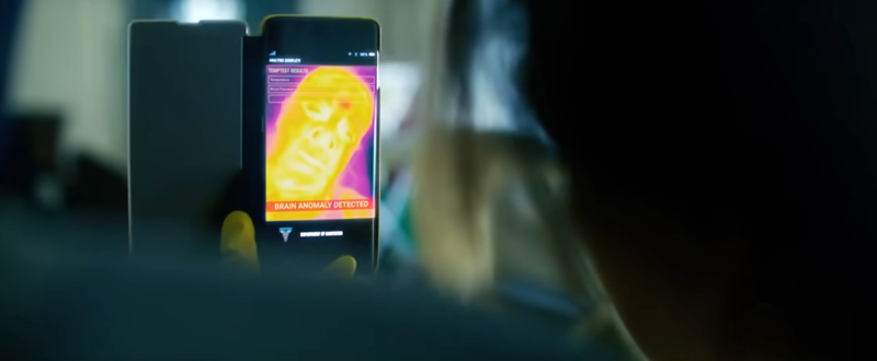 A screenshot from the movie Contagion. People who got the vaccine were given wristbands with barcodes in order to enter public spaces.