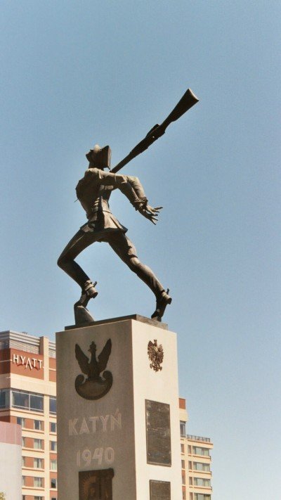 This plaque was installed at the base of the KATYN statue in New Jersey, which directly faced the Twin Towers. The statue (which is also depicted on the plaque), is of a wounded WWII soldier getting stabbed in the back…a little like America who got stabbed in the back on 911 **cough**Bush did it **cough.