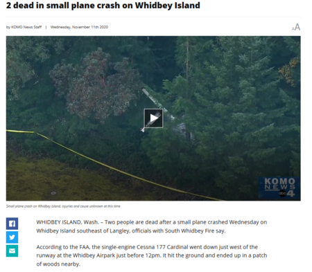2 dead in small plane crash on Whidbey Island
