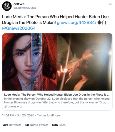 5. This is breaking: the person who helped Hunter Biden use drugs is Yifei Liu – Mulan!