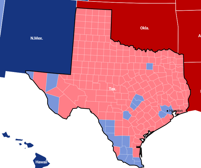Then, on election night, Florida and Iowa went to Trump. Then, of course, Texas went to Trump because … have you ever been to Texas? Do these “journalists” know anything about it? Try going anywhere in Texas outside of Austin, Houston, or Dallas and tell me that these people will ever vote Democrat. They would vote Republican even if its candidate is a rock with sunglasses on.